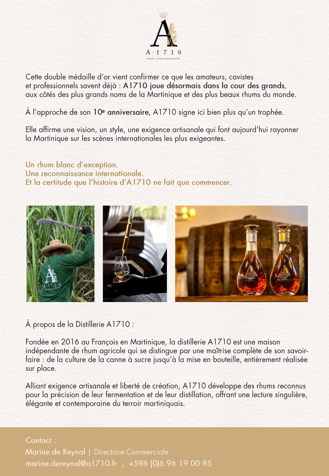 Un rhum blanc d'exception. Une reconnaissance internationale. Et la certitude que l'histoire d'A1710 ne fait que commencer.