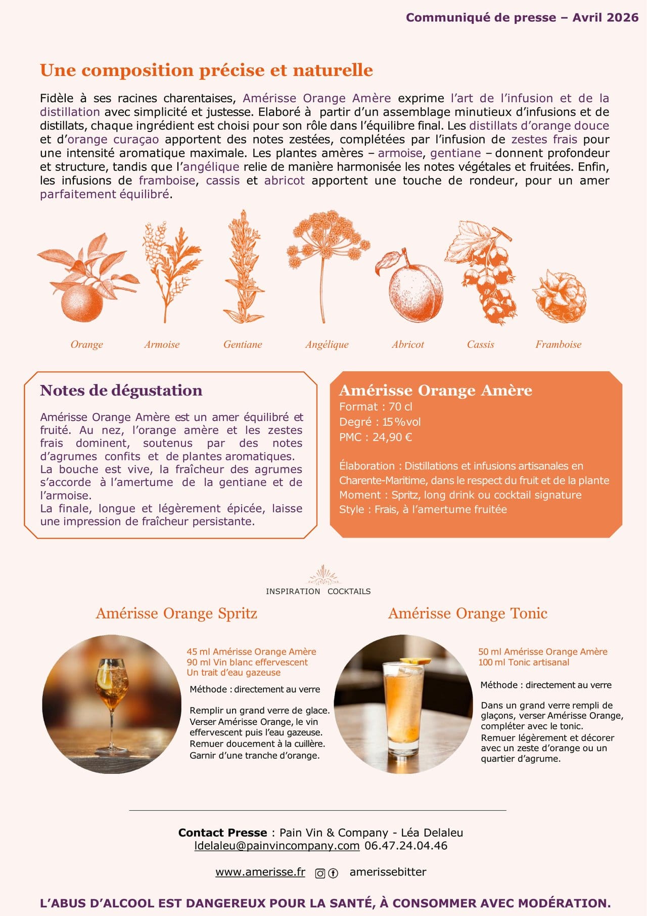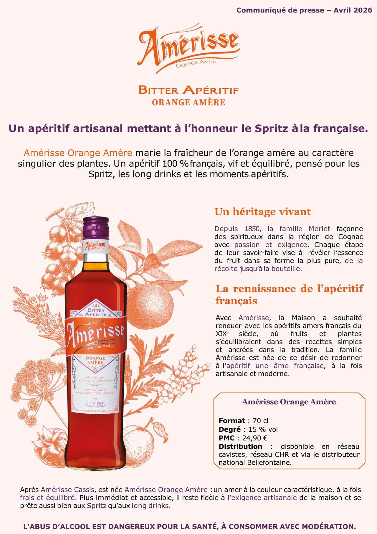 Amérisse Orange Amère marie la fraîcheur de l'orange amère au caractère singulier des plantes. Un apéritif 100 % français, vif et équilibré, pensé pour les Spritz, les long drinks et les moments apéritifs.