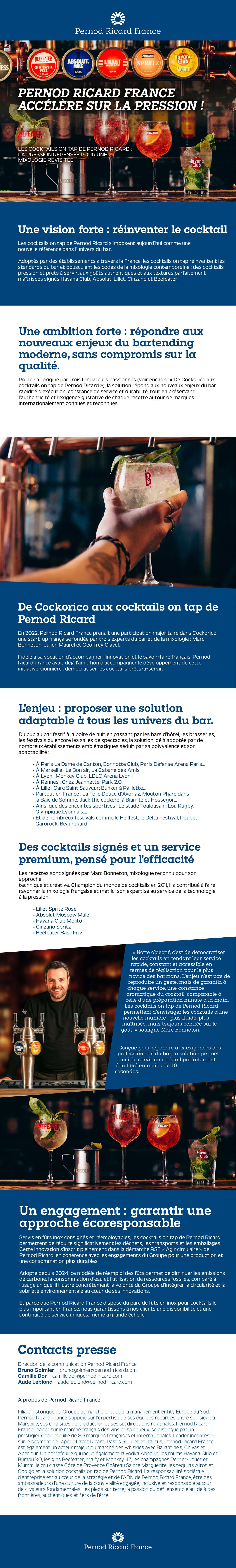 Les cocktails on tap de Pernod Ricard s'imposent aujourd'hui comme une nouvelle référence dans l'univers du bar.