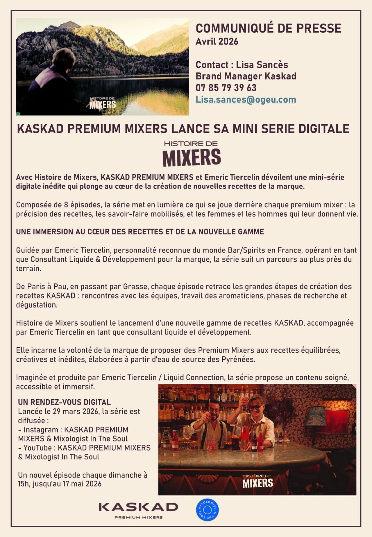 Avec Histoire de Mixers, KASKAD PREMIUM MIXERS et Emeric Tiercelin dévoilent une mini-série digitale inédite qui plonge au cœur de la création de nouvelles recettes de la marque.