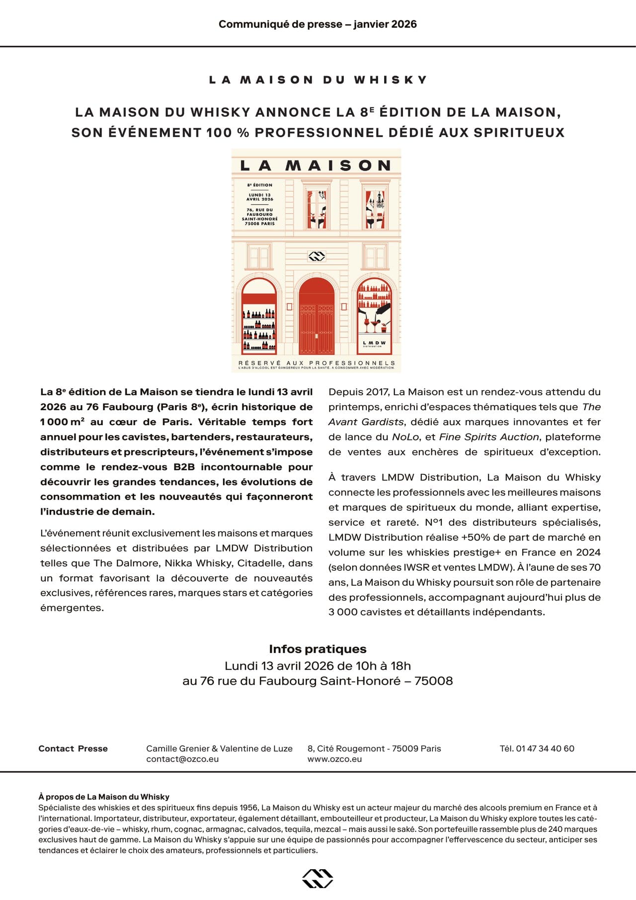 LA MAISON DU WHISKY ANNONCE LA 8E ÉDITION DE LA MAISON, SON ÉVÉNEMENT 100 % PROFESSIONNEL DÉDIÉ AUX SPIRITUEUX