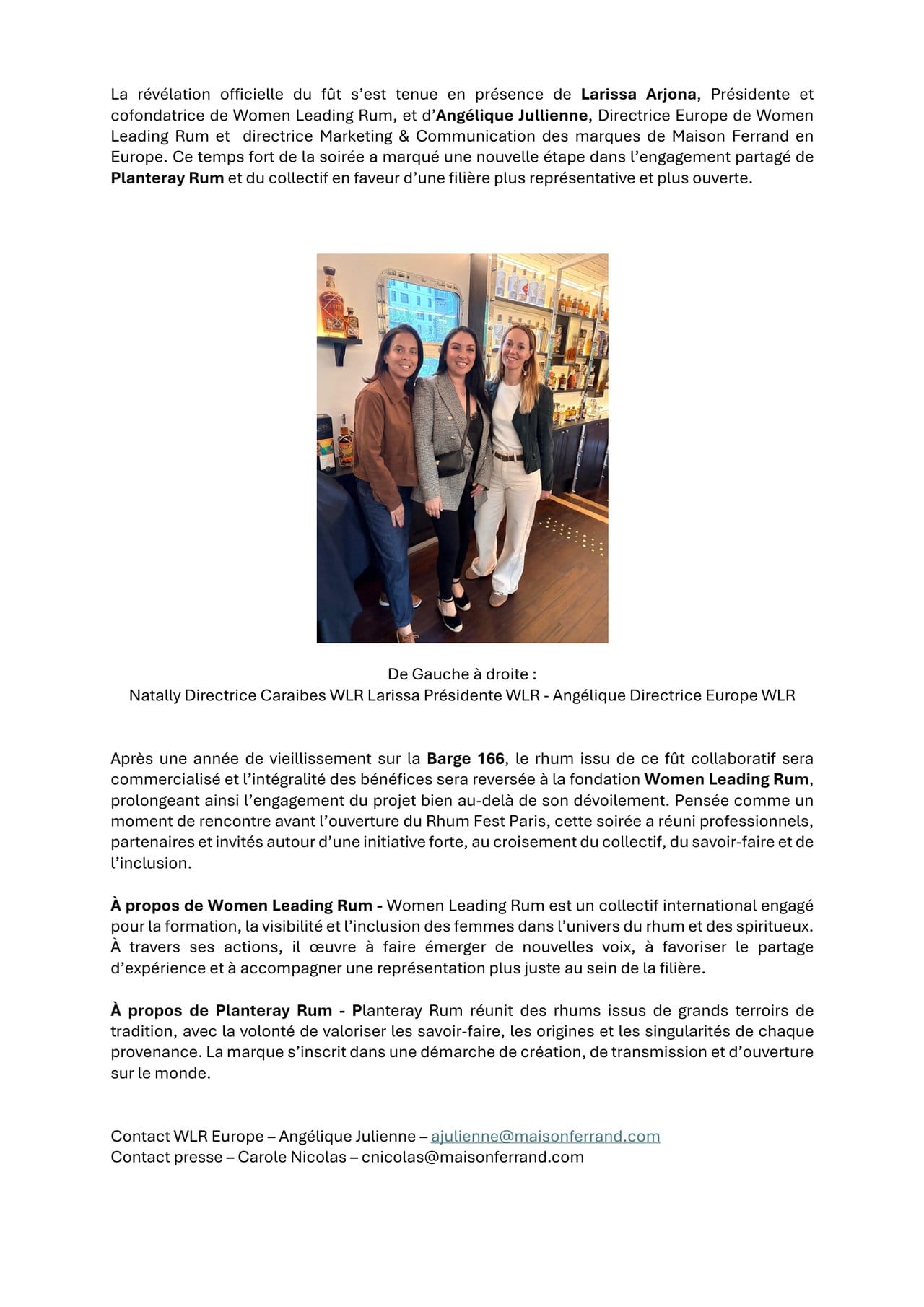 Planteray Rum et Women Leading Rum ont dévoilé un fût collaboratif inédit